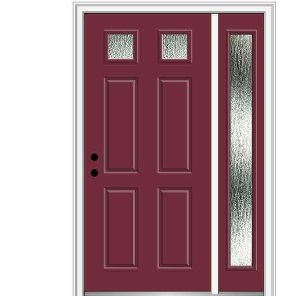 48 in. x 80 in. Right-Hand Inswing Rain Glass Burgundy Fiberglass Prehung Front Door on 4-9/16 in. Frame