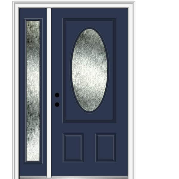 48 in. x 80 in. Right-Hand/Inswing Rain Glass Naval Fiberglass Prehung Front Door on 6-9/16 in. Frame