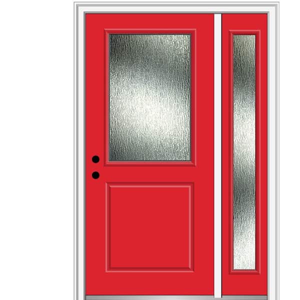 48 in. x 80 in. Right-Hand Inswing Rain Glass Red Saffron Fiberglass Prehung Front Door on 4-9/16 in. Frame