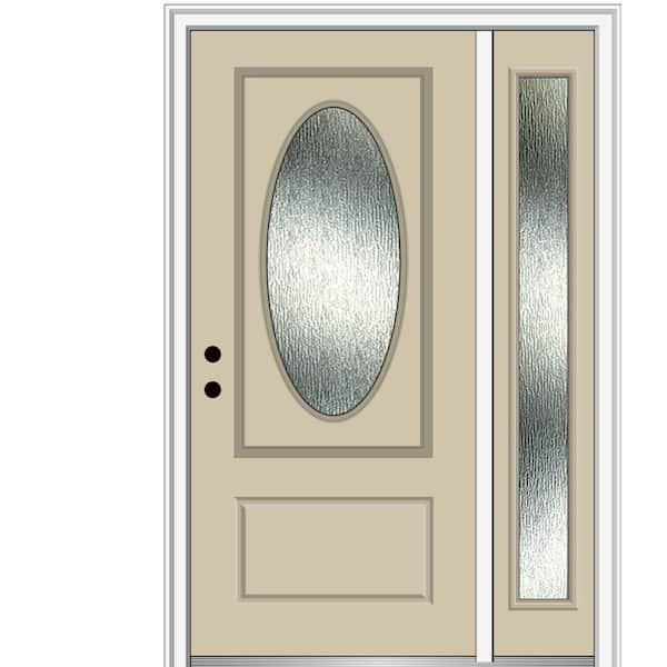 48 in. x 80 in. Right-Hand Inswing Rain Glass Wicker Fiberglass Prehung Front Door on 6-9/16 in. Frame