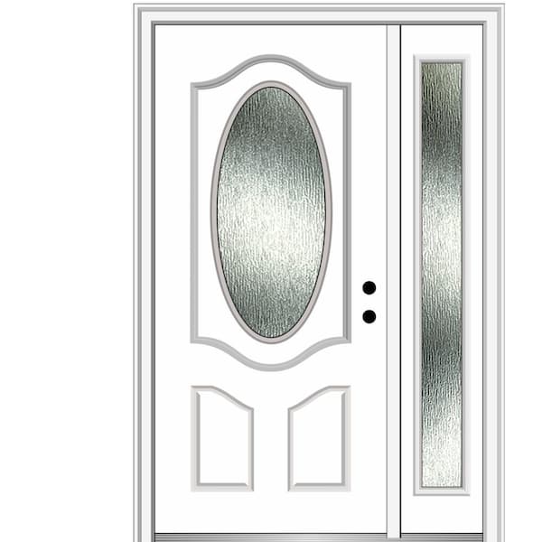 50 in. x 80 in. Left-Hand Inswing Rain Glass Brilliant White Fiberglass Prehung Front Door on 6-9/16 in. Frame