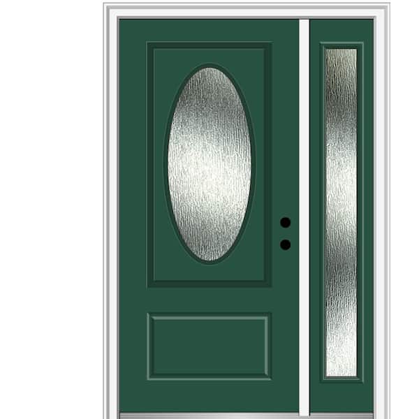 50 in. x 80 in. Left-Hand Inswing Rain Glass Hunter Green Fiberglass Prehung Front Door on 4-9/16 in. Frame