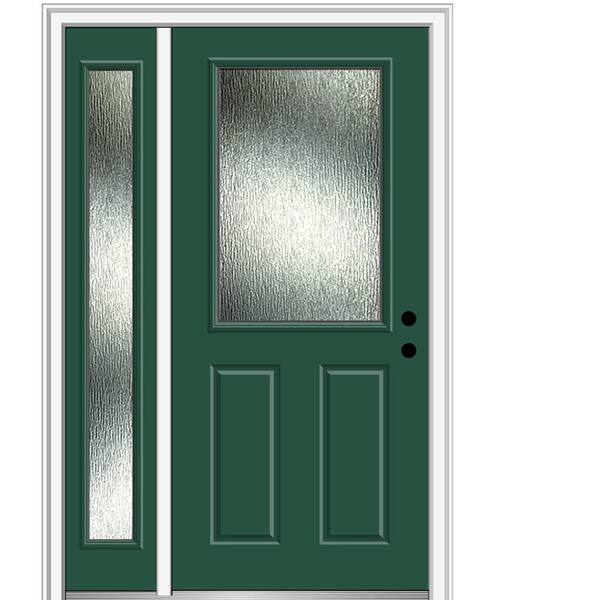 50 in. x 80 in. Left-Hand Inswing Rain Glass Hunter Green Fiberglass Prehung Front Door on 6-9/16 in. Frame