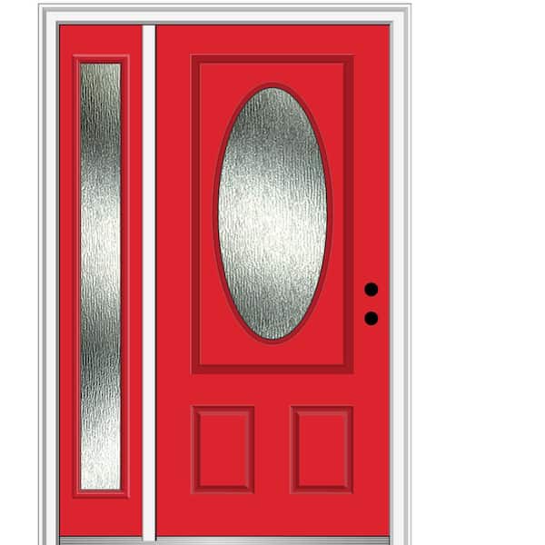 50 in. x 80 in. Left-Hand/Inswing Rain Glass Red Saffron Fiberglass Prehung Front Door on 4-9/16 in. Frame