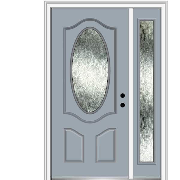 50 in. x 80 in. Left-Hand Inswing Rain Glass Storm Cloud Fiberglass Prehung Front Door on 4-9/16 in. Frame