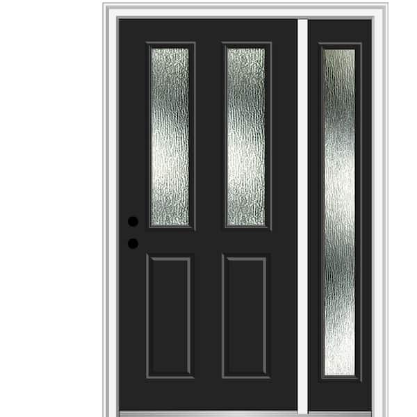 50 in. x 80 in. Right-Hand Inswing Rain Glass Black Fiberglass Prehung Front Door on 6-9/16 in. Frame