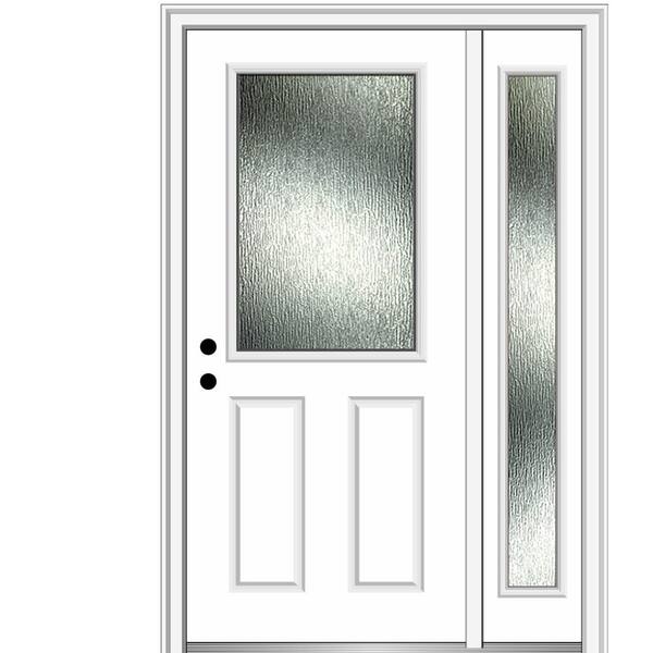 50 in. x 80 in. Right-Hand Inswing Rain Glass Brilliant White Fiberglass Prehung Front Door on 4-9/16 in. Frame
