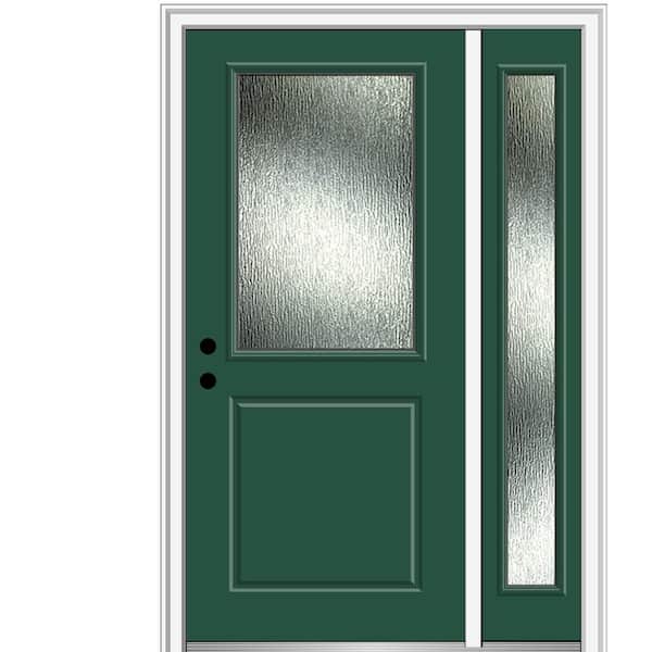 50 in. x 80 in. Right-Hand Inswing Rain Glass Hunter Green Fiberglass Prehung Front Door on 4-9/16 in. Frame