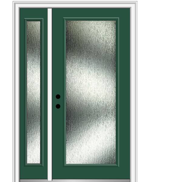 50 in. x 80 in. Right-Hand Inswing Rain Glass Hunter Green Fiberglass Prehung Front Door on 6-9/16 in. Frame