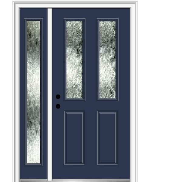 50 in. x 80 in. Right-Hand Inswing Rain Glass Naval Fiberglass Prehung Front Door on 4-9/16 in. Frame