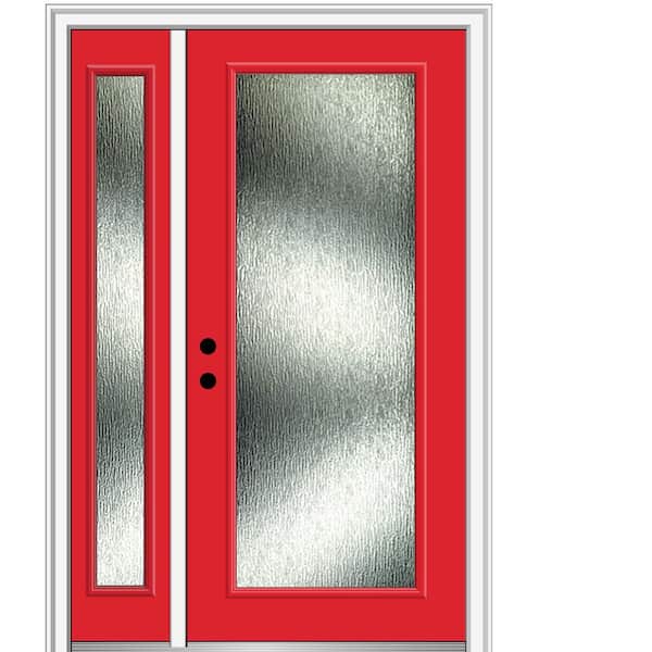 50 in. x 80 in. Right-Hand Inswing Rain Glass Red Saffron Fiberglass Prehung Front Door on 6-9/16 in. Frame