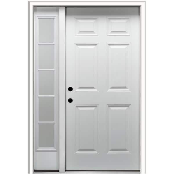 53 in. x 81.75 in. 6-panel Right Hand Inswing Classic Primed Fiberglass Smooth Prehung Front Door with One Sidelite