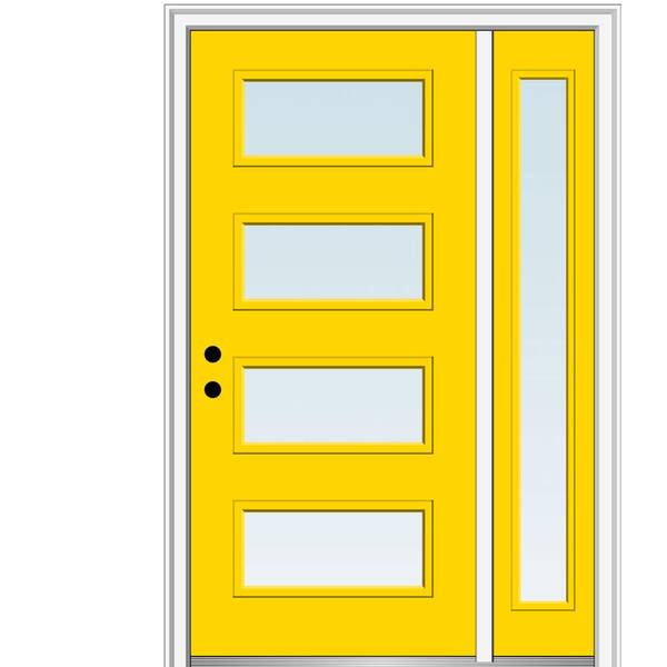 53 in. x 81.75 in. Celeste Clear Low-E Glass Right-Hand 4-Lite Eclectic Painted Steel Prehung Front Door with Sidelite
