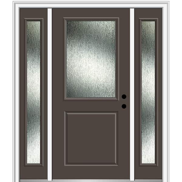 60 in. x 80 in. Left-Hand Inswing Rain Glass Brown Fiberglass Prehung Front Door on 6-9/16 in. Frame