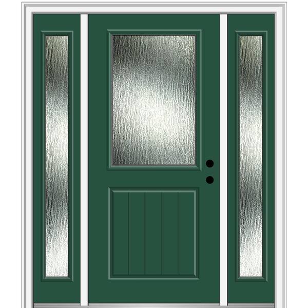 60 in. x 80 in. Left-Hand Inswing Rain Glass Hunter Green Fiberglass Prehung Front Door on 4-9/16 in. Frame