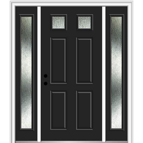 60 in. x 80 in. Right-Hand Inswing Rain Glass Black Fiberglass Prehung Front Door on 4-9/16 in. Frame