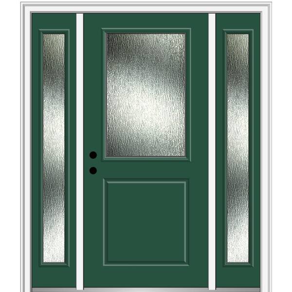 60 in. x 80 in. Right-Hand Inswing Rain Glass Hunter Green Fiberglass Prehung Front Door on 6-9/16 in. Frame