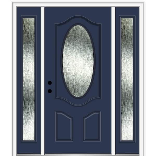 60 in. x 80 in. Right-Hand Inswing Rain Glass Naval Fiberglass Prehung Front Door on 6-9/16 in. Frame