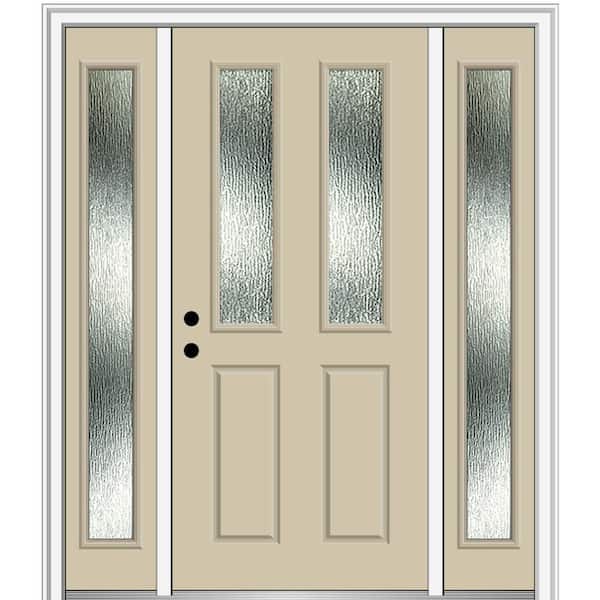 60 in. x 80 in. Right-Hand Inswing Rain Glass Wicker Fiberglass Prehung Front Door on 4-9/16 in. Frame