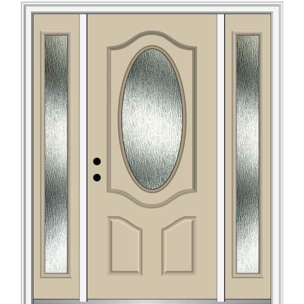 60 in. x 80 in. Right-Hand Inswing Rain Glass Wicker Fiberglass Prehung Front Door on 4-9/16 in. Frame