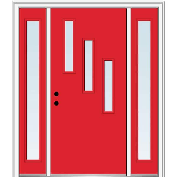 64.5 in. x 81.75 in. Davina Right-Hand Inswing 3-Lite Clear Low-E Painted Fiberglass Prehung Front Door with Sidelites