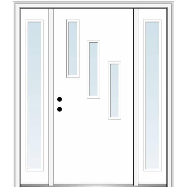 64.5 in. x 81.75 in. Davina Right-Hand Inswing 3-Lite Clear Low-E Painted Fiberglass Prehung Front Door with Sidelites