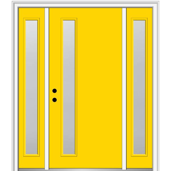 64.5 in. x 81.75 in. Viola Right-Hand Inswing 1-Lite Frosted Painted Fiberglass Smooth Prehung Front Door with Sidelites