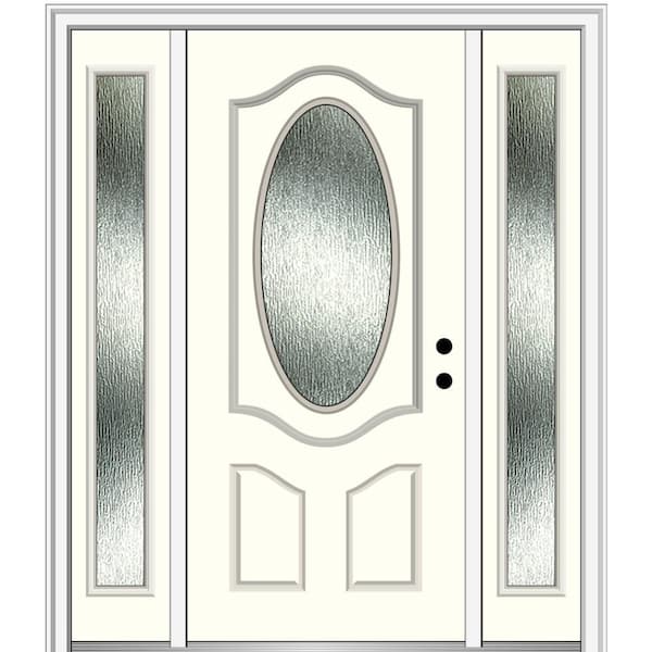 64 in. x 80 in. Left-Hand Inswing Rain Glass Alabaster Fiberglass Prehung Front Door on 4-9/16 in. Frame