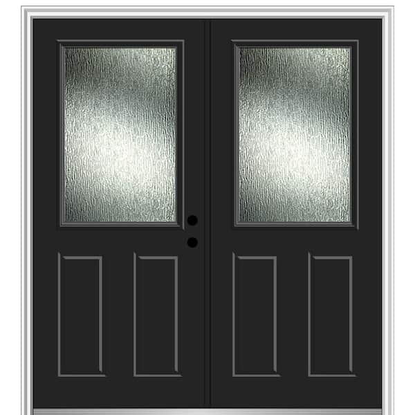 64 in. x 80 in. Left-Hand Inswing Rain Glass Black Fiberglass Prehung Front Door on 6-9/16 in. Frame