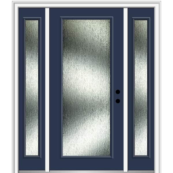 64 in. x 80 in. Left-Hand Inswing Rain Glass Naval Fiberglass Prehung Front Door on 6-9/16 in. Frame