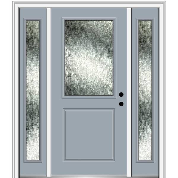 64 in. x 80 in. Left-Hand Inswing Rain Glass Storm Cloud Fiberglass Prehung Front Door on 4-9/16 in. Frame