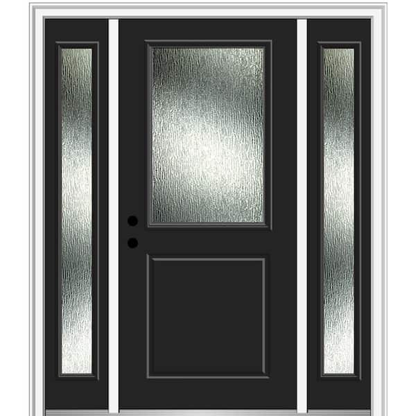 64 in. x 80 in. Right-Hand Inswing Rain Glass Black Fiberglass Prehung Front Door on 4-9/16 in. Frame