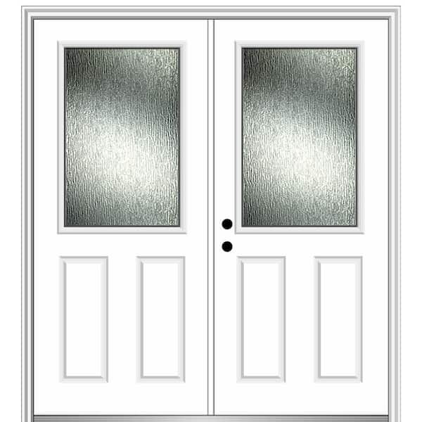 64 in. x 80 in. Right-Hand Inswing Rain Glass Brilliant White Fiberglass Prehung Front Door on 6-9/16 in. Frame