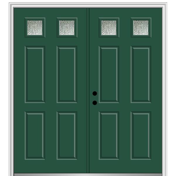64 in. x 80 in. Right-Hand Inswing Rain Glass Hunter Green Fiberglass Prehung Front Door on 4-9/16 in. Frame