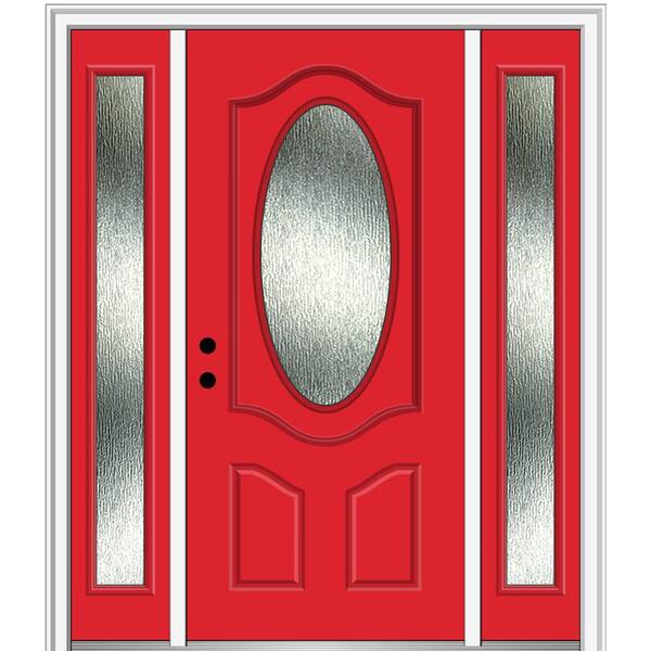 64 in. x 80 in. Right-Hand Inswing Rain Glass Red Saffron Fiberglass Prehung Front Door on 4-9/16 in. Frame
