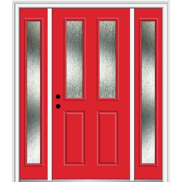 64 in. x 80 in. Right-Hand Inswing Rain Glass Red Saffron Fiberglass Prehung Front Door on 6-9/16 in. Frame