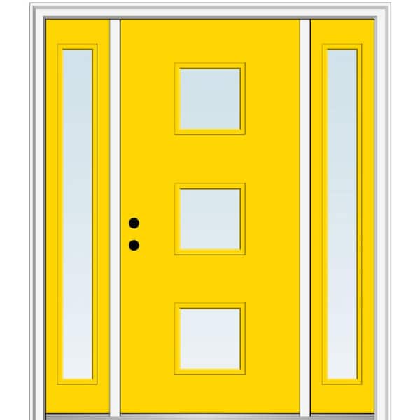 68.5 in. x 81.75 in. Aveline Right-Hand Inswing 3-Lite Clear Low-E Painted Fiberglass Prehung Front Door w/ Sidelites