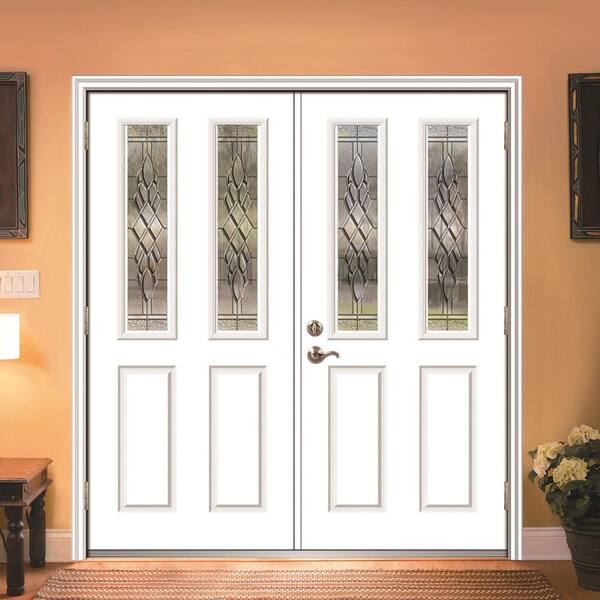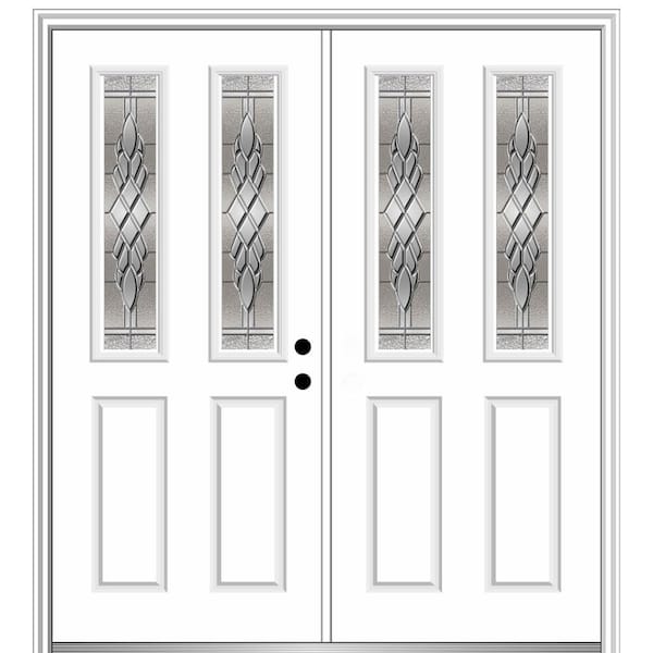 68 in. x 80 in. Grace Left-Hand Inswing 2-Lite 2-Panel Decorative Primed Steel Prehung Front Door on 6-9/16 in. Frame