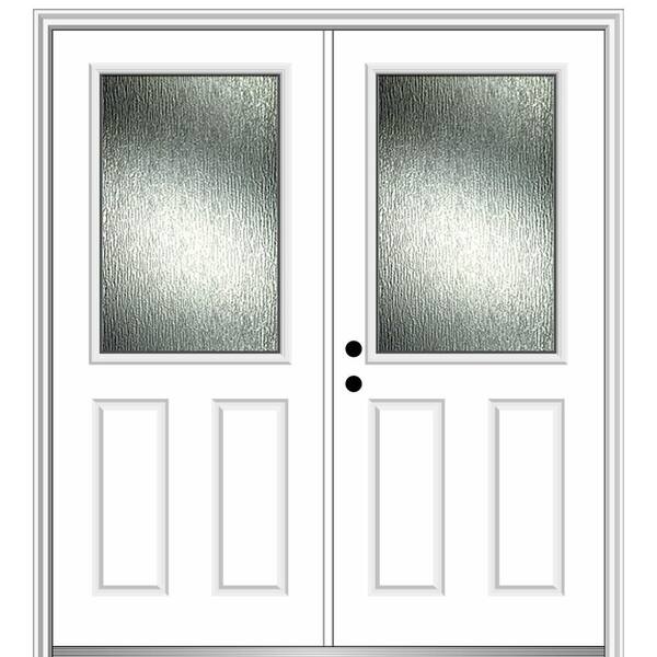 68 in. x 80 in. Right-Hand Inswing Rain Glass Brilliant White Fiberglass Prehung Front Door on 6-9/16 in. Frame