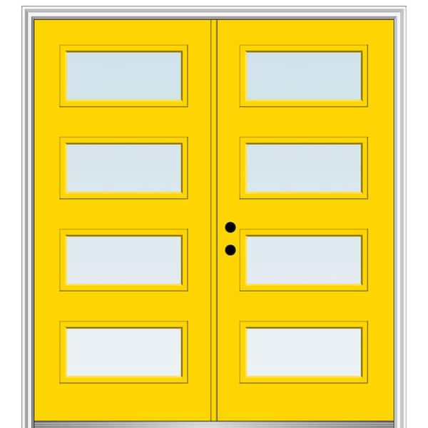 72 in. x 80 in. Celeste Right-Hand Inswing 4-Lite Clear Low-E Painted Fiberglass Smooth Prehung Front Door