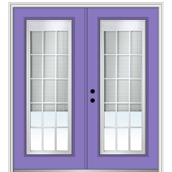 72 in. x 80 in. Internal Blinds and Grilles Right-Hand Full Lite Clear LowE Painted Fiberglass Smooth Prehung Front Door