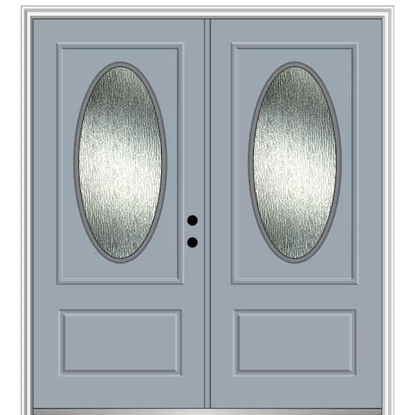 72 in. x 80 in. Left-Hand/Inswing Rain Glass Storm Cloud Fiberglass Prehung Front Door on 4-9/16 in. Frame