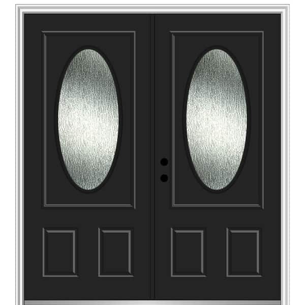 72 in. x 80 in. Right-Hand/Inswing Rain Glass Black Fiberglass Prehung Front Door on 6-9/16 in. Frame