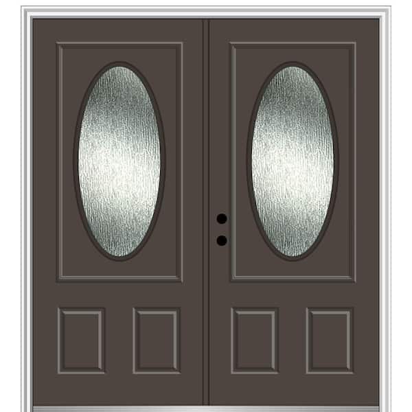 72 in. x 80 in. Right-Hand/Inswing Rain Glass Brown Fiberglass Prehung Front Door on 6-9/16 in. Frame