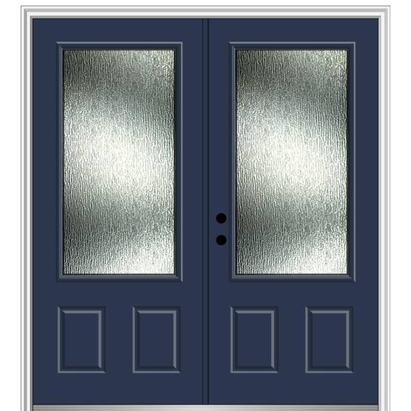 72 in. x 80 in. Right-Hand Inswing Rain Glass Naval Fiberglass Prehung Front Door on 6-9/16 in. Frame