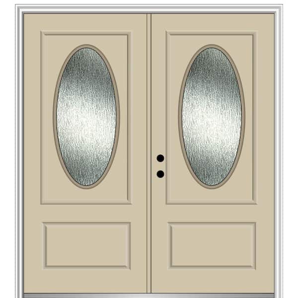 72 in. x 80 in. Right-Hand/Inswing Rain Glass Wicker Fiberglass Prehung Front Door on 6-9/16 in. Frame