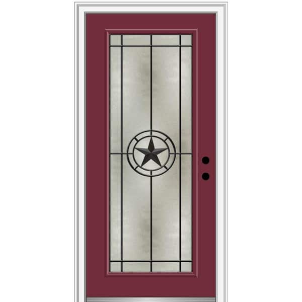Elegant Star 36 in. x 80 in. Left-Hand/Inswing Full Lite Decorative Glass Burgundy Painted Fiberglass Prehung Front Door