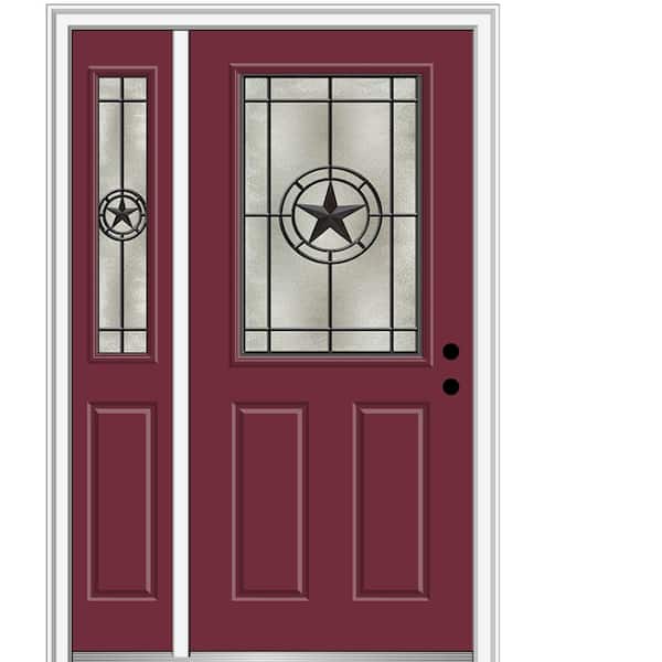 Elegant Star 48 in. x 80 in. Left-Hand Inswing 1/2 Lite Decorative Glass Burgundy Painted Fiberglass Prehung Front Door