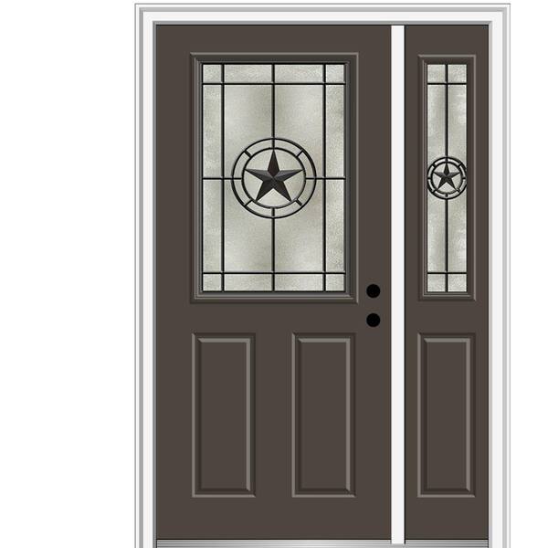 Elegant Star 50 in. x 80 in. Left-Hand Inswing 1/2 Lite Decorative Glass Brown Painted Fiberglass Prehung Front Door