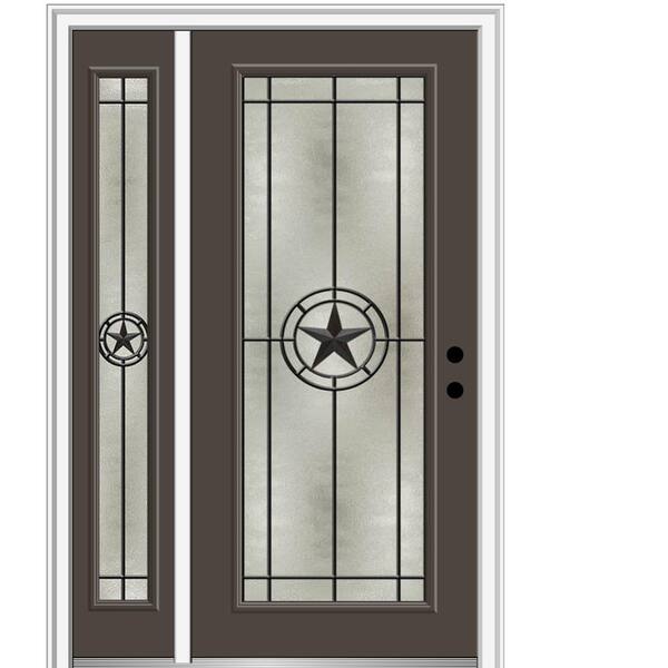 Elegant Star 51 in. x 81.75 in. Left-Hand Inswing Full Lite Decorative Glass Brown Painted Fiberglass Prehung Front Door